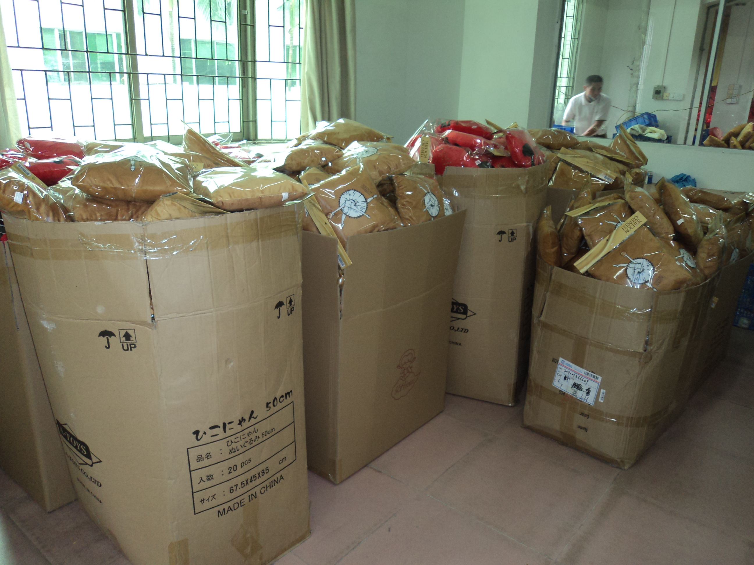 (原則上是尺寸25CM以下, 大陸宇凰工廠成品回台, 25 CM以上布套回台灣工廠充填棉花或泡粒)
